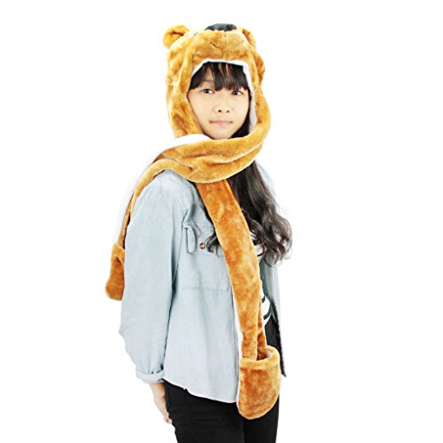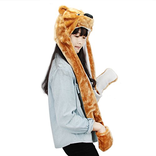 -. Brand : Fakeface -. Department : womens -. Feature : Material: 100% Polyester / Stylish appearance, lovely animals design / Plush Winter Animal Hats. With plush material, it is soft, comfortable to wear / A great accessory to keep you warm during the cold / Perfect for the parties or every day use -. ProductGroup : Apparel -. ProductTypeName : ADULT_COSTUME -. Title : FakeFace Cute Plush Hood Animal Hat with Mitten Gloves Scarf Hood Gloves