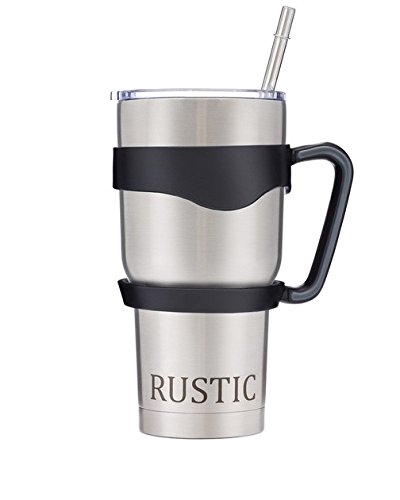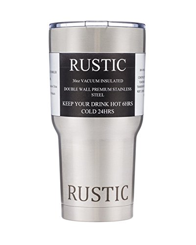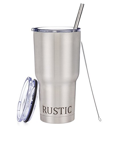 RUSTIC 30oz Stainless Steel Double Wall Vacuum Insulated Tumbler with Clear Plastic Lid and Straw. BEST Cup Mug