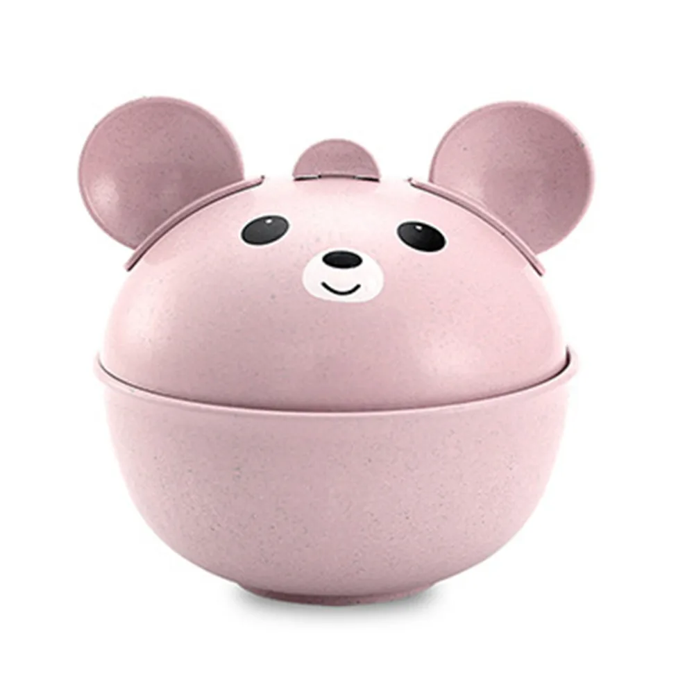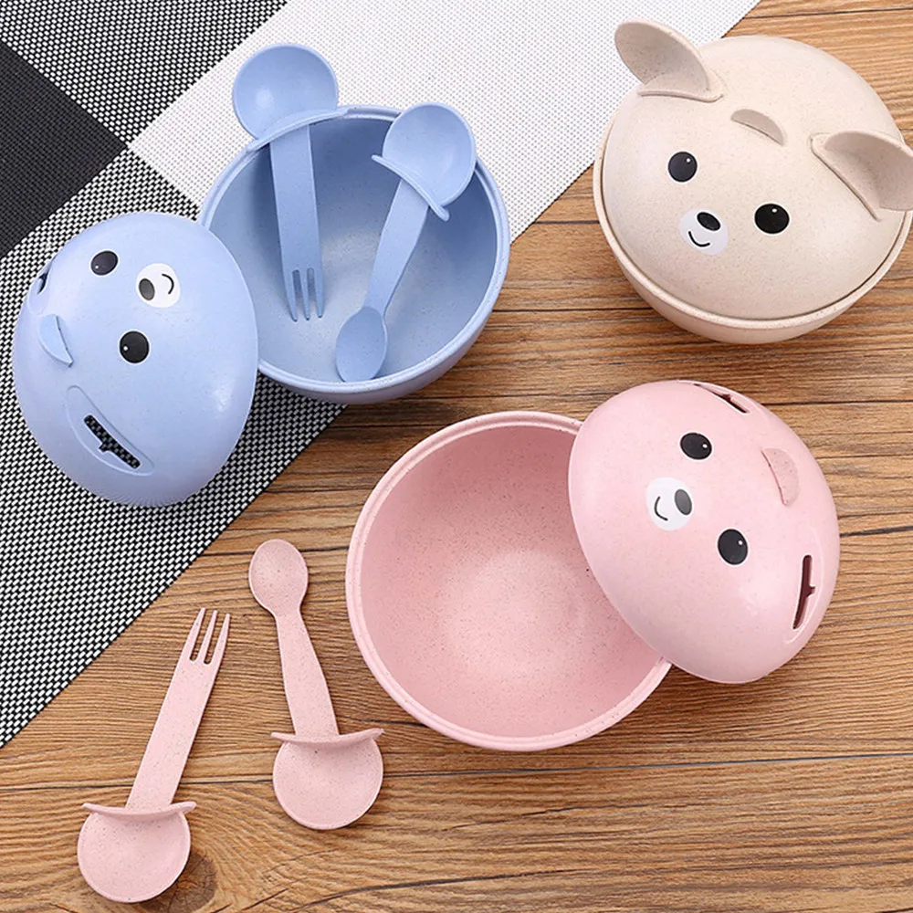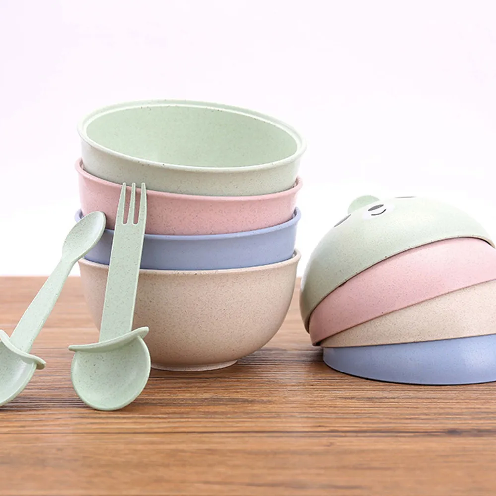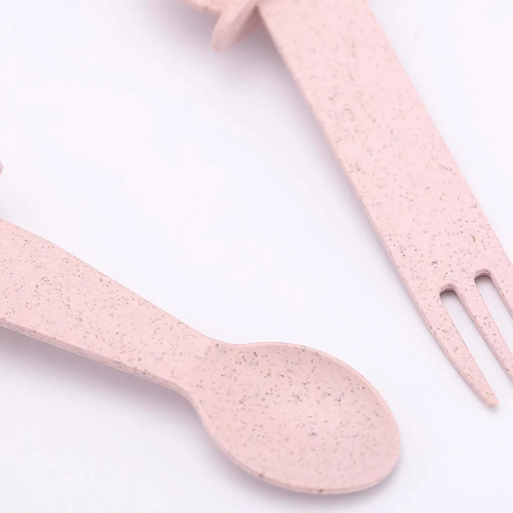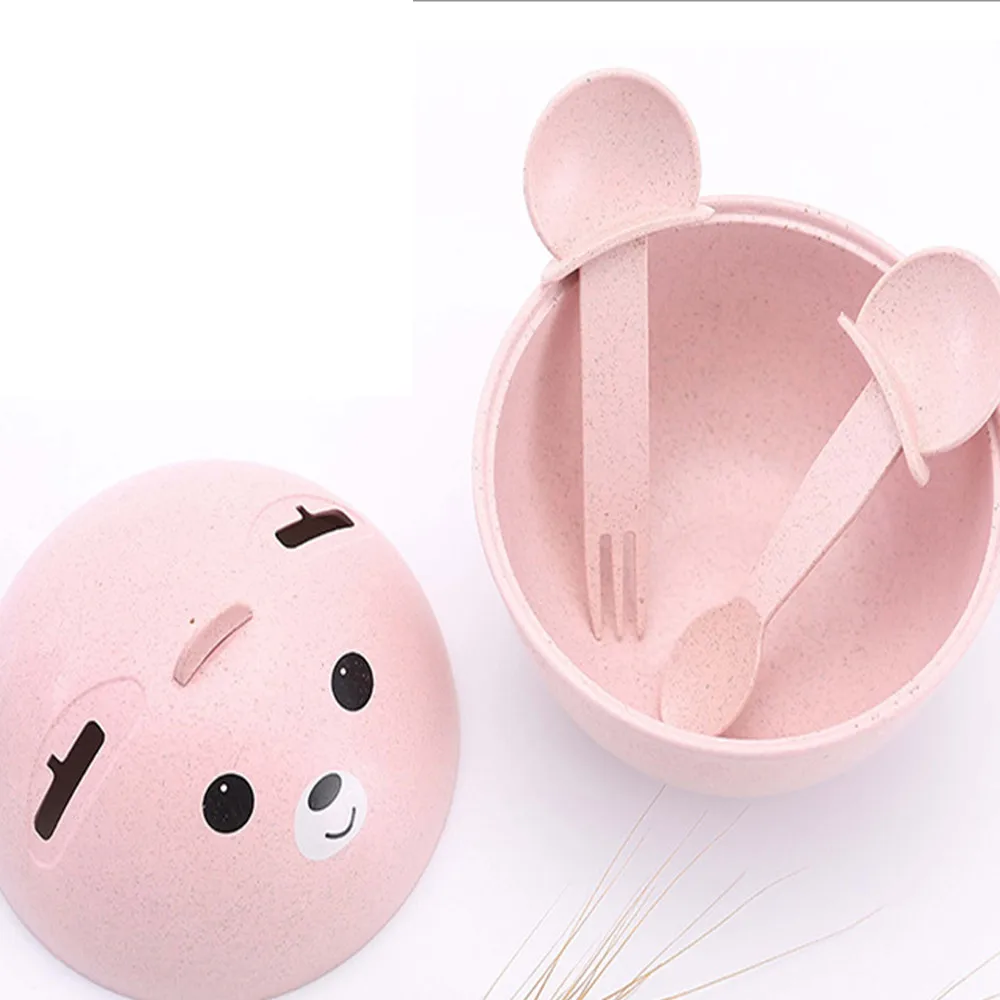 Natural Wheat Straw Cute Children's Drop-Proof Hot Bowl Spoon Fork Set Pink