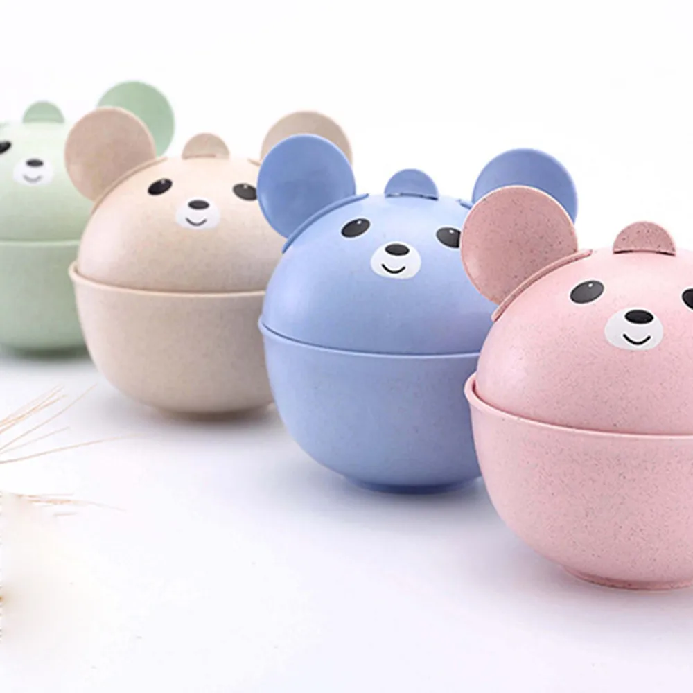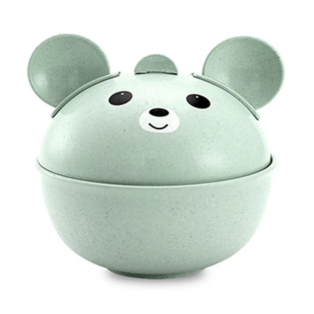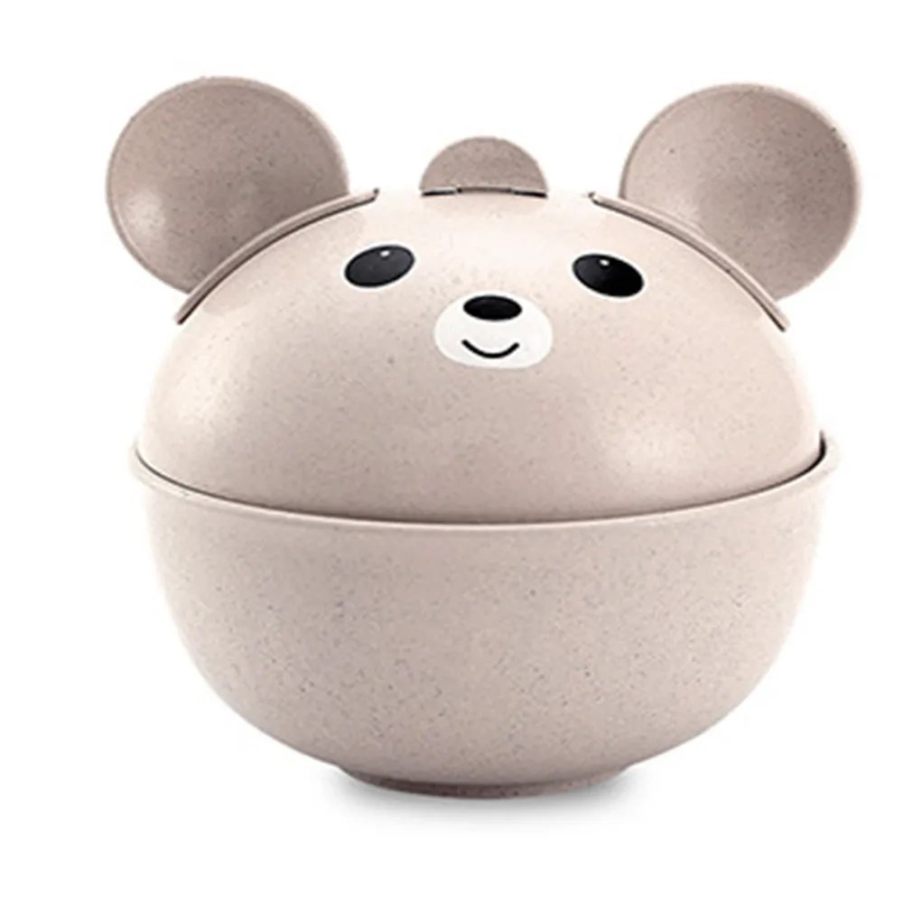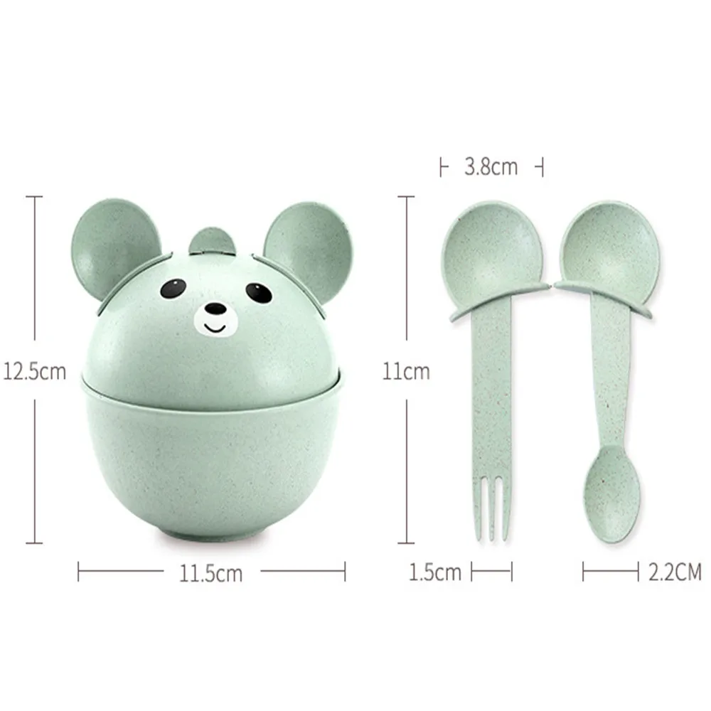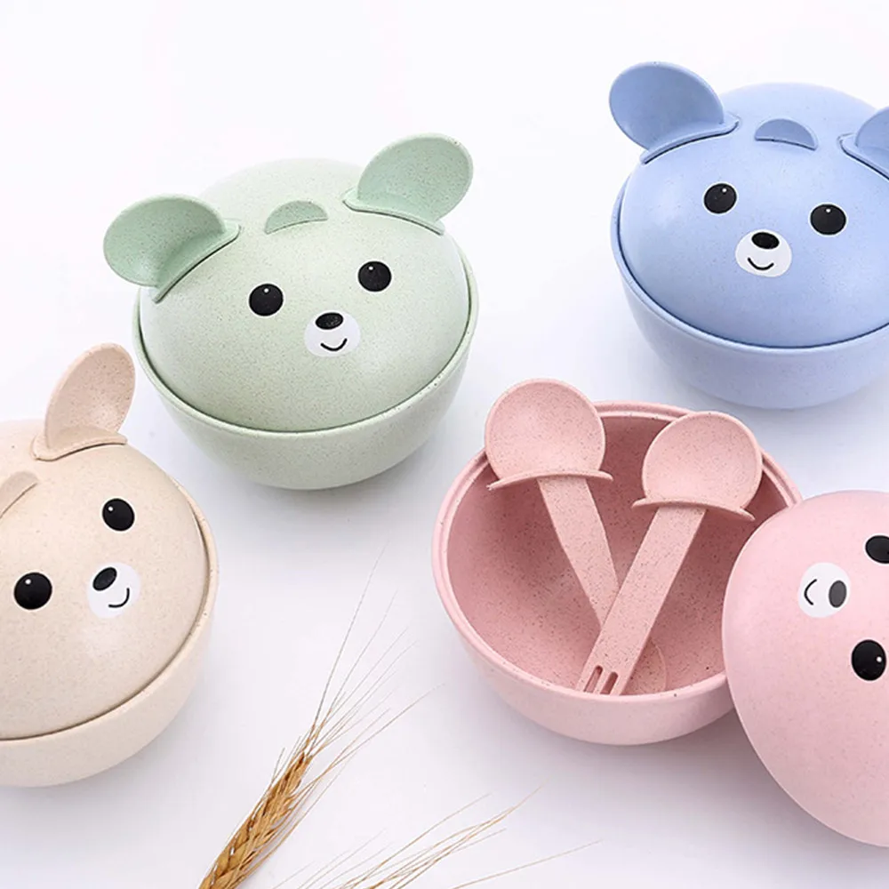 Natural Wheat Straw Cute Children's Drop-Proof Hot Bowl Spoon Fork Set Pink