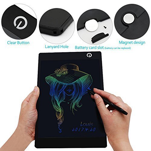 -. Feature : Two magnets on the back. It can be easily put on the freezer or others attracted to magnet / Colorful screen display, more popular, can be used for office memo, early education, students drafts, family memo, deaf people communicate with each other / Come with smooth stylus, you can also pait or write with your finger, the line can be thick or thin based on your need / Reinforced ABS material, shatter-resistant. With mainstream mobile phone APP picture scan software, you can post your paintings on this board online very conveniently / One-button delete function, easy to replace a new battery. The board can be used one or two years normally before you need to change a battery, just think how much paper you save, that is great contribution the the environment protection