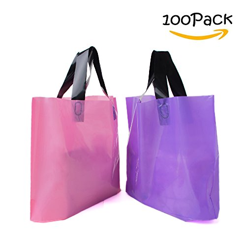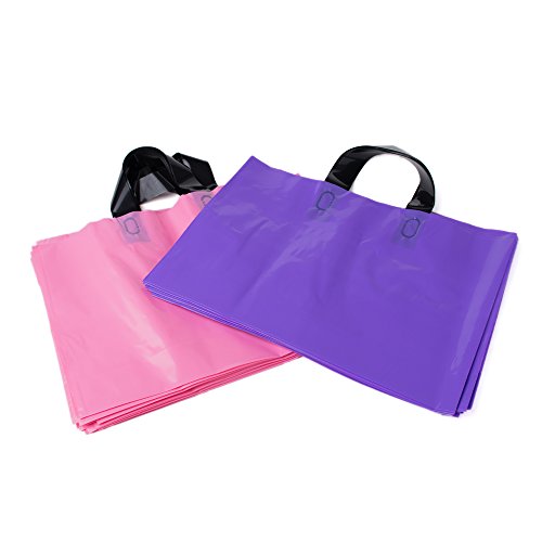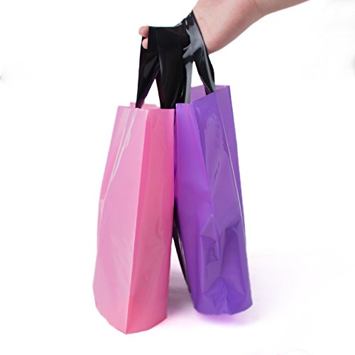 LazyMe 14" x 10"x2'' Large Merchandise Bags with Handles with Bottom Gusset, Thick Plastic, Gift Bags Retail Clothing Shopping Bags(100 pcs, Pink,Purple)
