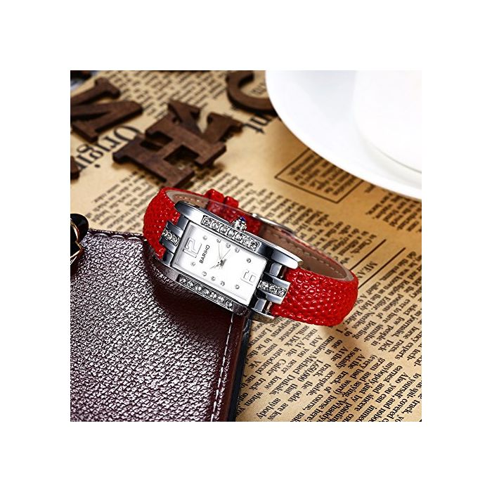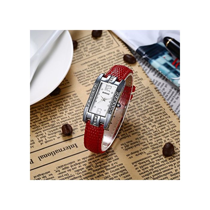 BARIHO Rockyu 감정 브랜드 인기 손목시계 레이디스 맨즈 비지니스 빨강 레더 가죽 밴드 30M 방수 [병행수입품]