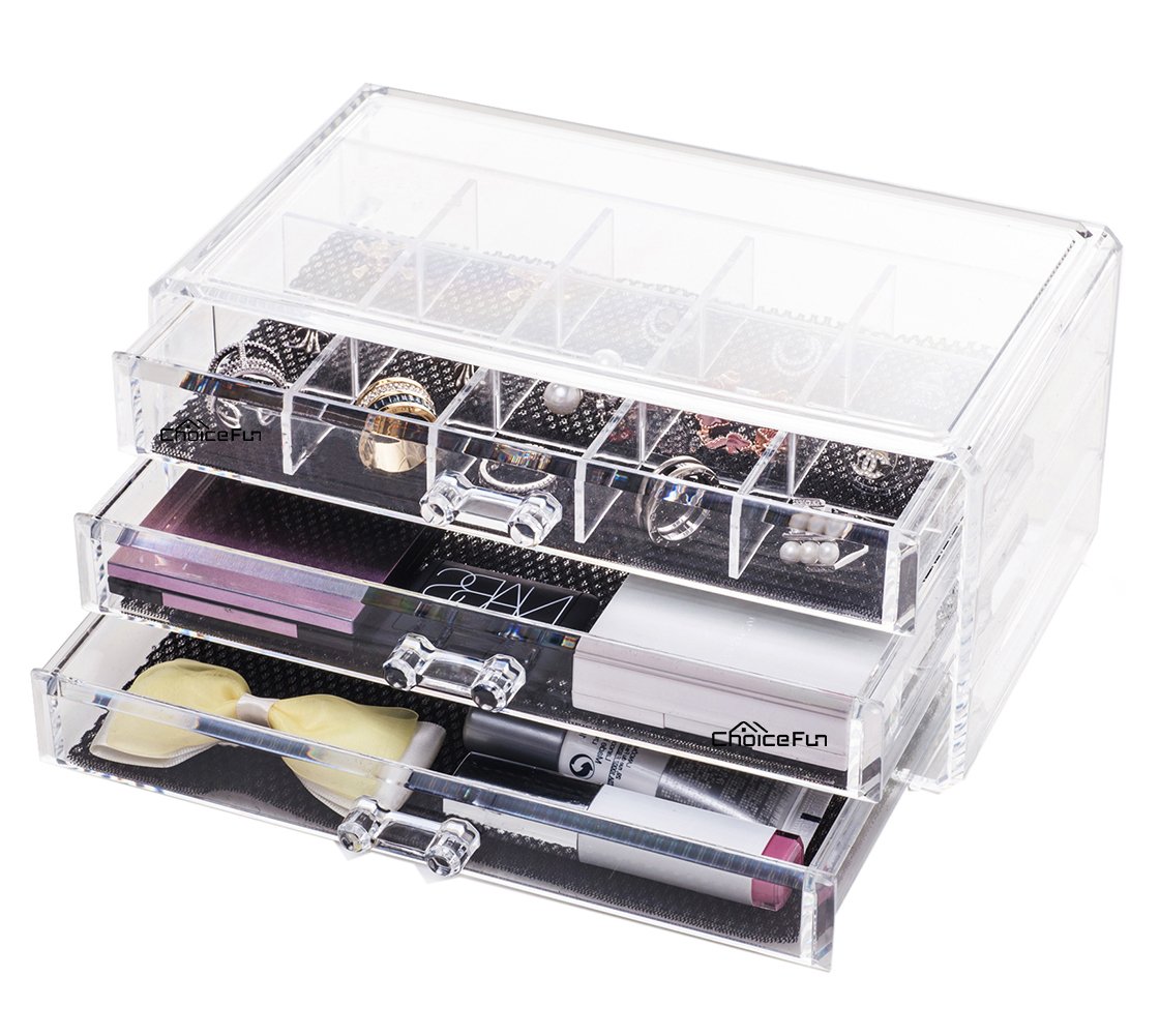 Choice Fun-jpから購入しなければ、アマゾンのアフターサービスを受けません。ぜひ指定の店を見定めてください。 一番上の引き出しには取り外せる仕切りが付いて、ジュエリーやアクセサリーを使い分けに収納できます。 軽くて丈夫で、汚れてもお手入れ簡単です。小さめのコスメ用品やジュエリーの収納にはぴったりで、目薬、名刺、指輪、メガネや腕時計などを収納することもできます。 透き通って、中身をパット見渡せるから、選ぶのも、引き出しを開けるのもスムーズです。 引き出しには柔らかいシートが付いて、ジュエリーやアクセサリーを守ります。