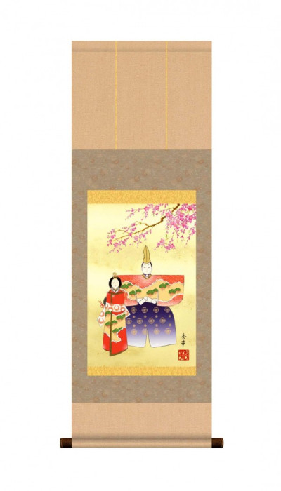 毎年、毎年の子どもの成長を願い祝うお節句に飾っていただける絵柄です。気品高く穏和な表情、人物画に求められるのは顔の表情と動形です。 製造国:日本 素材・材質:表装:洛彩緞子本紙:新絹本軸:樹脂 商品サイズ:約900(紐除く)×360(軸含む)mm 重量:180g  ※サプライヤー直送品 ご注文後7~8営業日後の出荷となります【商品名】野川 秀華 桃の節句(雛祭り)掛軸 「立雛」 化粧箱入り F6-210