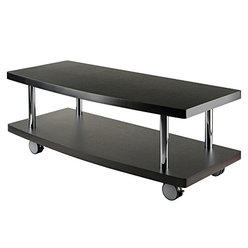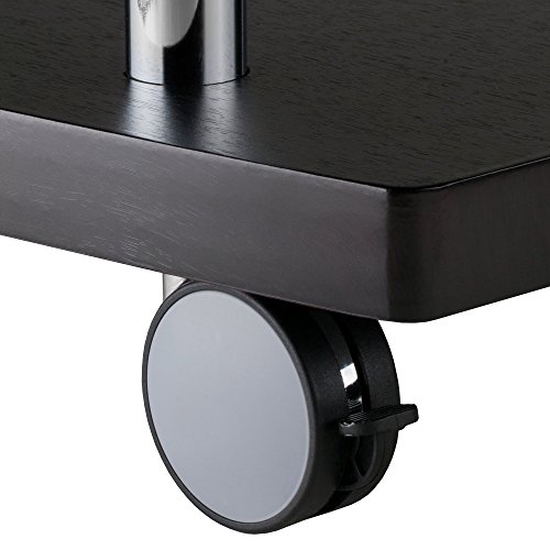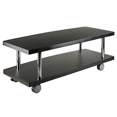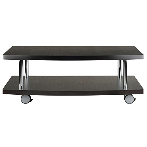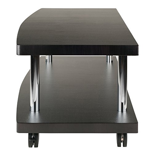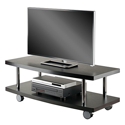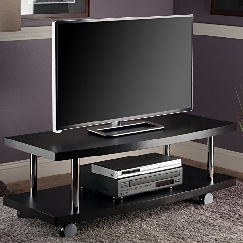 -. Feature : Modern rolling TV/media stand designed for large televisions and components / 2 composite wood shelves with stylish Espresso finish and curved front edges / Polished chrome-finish metal tubes provide sturdy support / Ready to assemble with included tools / Measures 47-1/4 inches long by 18 inches deep by 17 inches high