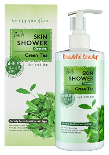 -. Feature : ALL CLEANSINGS, WASHING FACE & CLEANSING MAKEUP AT ONCE, NO DOUBLE CLEANSING OR WASHING NECESSARY - SKIN SHOWER GREEN TEA PH 8.8 MILD & DEEP CLEANSER DELIVERS MULTIPLE CLEANSING BENEFITS (SOAP, FOAM CLEANSING, CLEANSING WATER & CLEANSING CREAM) IN A SINGLE PRODUCT / PH IS A MEASURE OF THE HYDROGEN ION CONCENTRATION OF A SOLUTION / LOW PH LEVEL (BELOW PH5.5) CLEANSER IS MILD BUT ITS CLEANSING POWER IS WEAK SO IMPURITIES WILL STILL REMAIN IN THE PORES / CLEANSING POWER OF HIGH PH LEVEL (OVER PH10) CLEANSER IS STRONG BUT IT MAY IRRITATE THE SKIN / PH8.8 IS LOW ALKALINE AND THIS LEVEL REDUCES SKIN IRRITATION, CLEANSES DEAD SKIN CELLS, IMPURITIES & OIL CLEANLY & GENTLY BUT CONTROLS THE BALANCE OF MOISTURE & OIL AT THE SAME TIME / USE BEFORE MAKEUP IN THE MORNING, CONTROLS THE SKIN BALANCE TO HELP BLENDING YOUR MAKEUP WELL / CONTAINS 530mg OF GREEN TEA EXTRACT + SPROUT EXTRACT / GREEN TEA EXTRACT HELPS TO TIGHTEN AND CALM YOUR SKIN, CONTROLS THE BALANCE OF MOISTURE & OIL TO KEEP YOUR SKIN HEALTHY / MADE IN S. KOREA / 530ml / PH8.8 IS A EXPERIMENTAL VALUE - THE LEVEL MIGHT DEVIATE SLIGHTLY DURING PRODUCTION