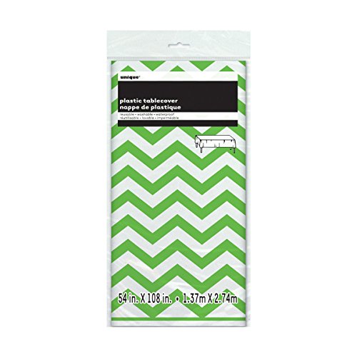 - Feature : 1 Plastic Lime Green Table Cover / Plastic Lime Green Table Cover measures 108" x 54" / Protects your table from stains and spills / Disposable tableware makes after party clean up easy / Coordinate with other Green Chevron party supplies and decorations from Unique