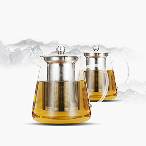 Luxtea Glass Teapot 25oz with Stainless Steel Infuser and Lid for Blooming and Loose Leaf Tea (25oz)