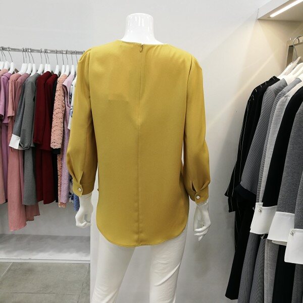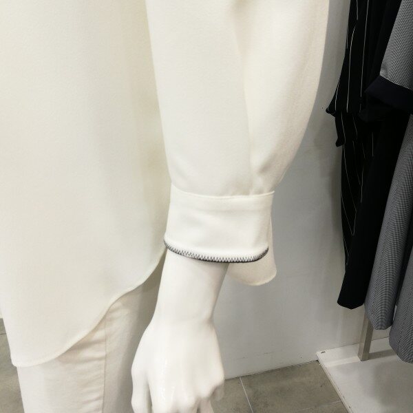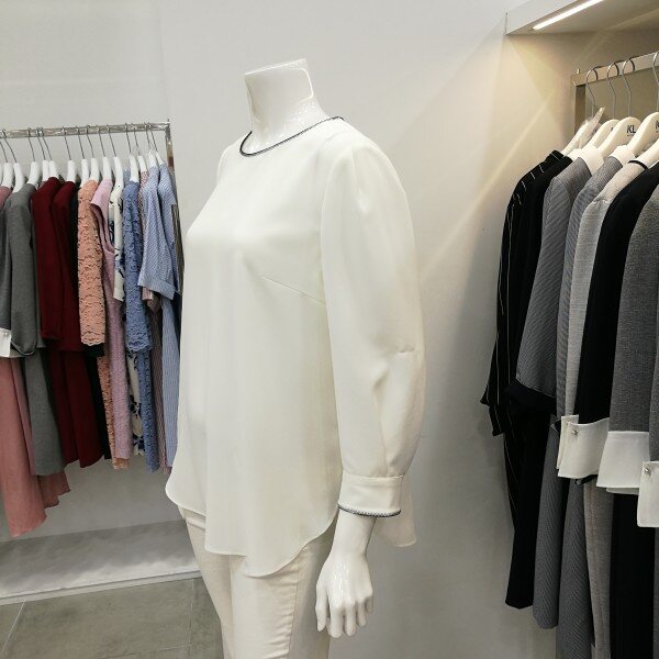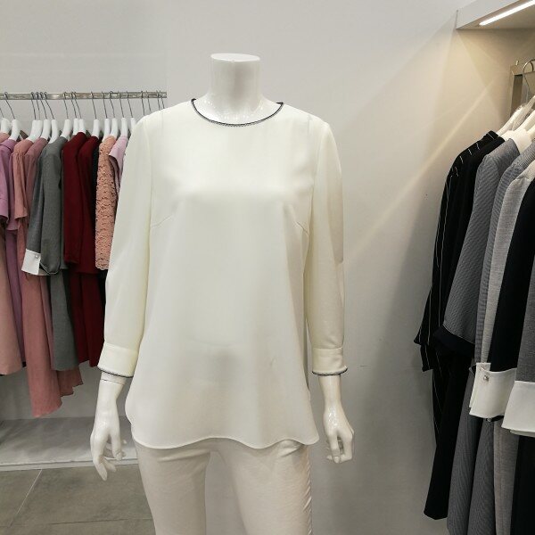 심플하고 단순하다. 목부분과 소매끝에 스티치로 포인트를 주어 지루함을 없앴다. 어디에나 코디를 해도 세련되게 입을 수 있다.