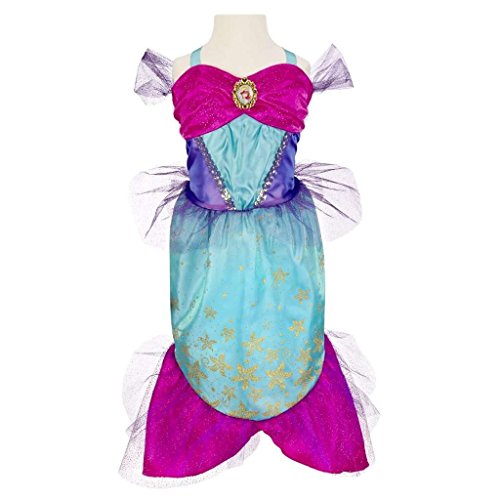 -. Binding : Toy -. Brand : Disney Princess -. Color : green -. Department : girls -. EAN : 0885594703380 -. Feature : Look just like Ariel! / This gorgeous, glittery dress shimmers and shines with every step / Ariel's Enchanted Evening dress features gold glitter accents and two-tone fabrics / This dress is perfect for your little Disney Princess / Ages 3 and up, Fits 4-6X -. IsAdultProduct : 0 -. Label : Jakks -. Manufacturer : Jakks -. Model : 73988 -. MPN : WS-908 -. PackageQuantity : 1 -. PartNumber : WS-908 -. ProductGroup : Toy -. ProductTypeName : TOYS_AND_GAMES -. Publisher : Jakks -. Size : 18 x 1 x 30.5 Inch -. Studio : Jakks -. Title : Disney Princess Enchanted Evening Dress: Ariel -. UPC : 039897739885 -. Warranty : No Warranty