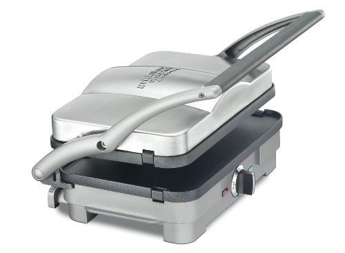 - Feature : Contact grill, panini press, full grill, full griddle and half grill/half griddle options / Removable and reversible dishwasher-safe nonstick cooking plates for easy storage / Cooking plates drain grease for healthy cooking and integrated drip tray collects grease for easy disposal / Panini-style handle with hinged cover adjusts to thickness of food; adjustable temperature control / Includes manual with gourmet recipes and a dishwasher-safe scraping tool for easy cleanup