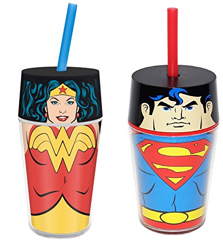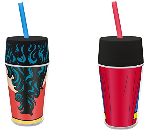 DC Comics Justice League Tumbler Bundle: One 14 oz Wonder Woman tumbler and one 14 oz Superman tumbler