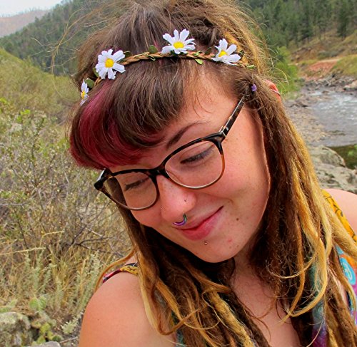 Sometimes classic is best! This hippie headband is easy to wear and matches everything. These cute little white daisies nestle into a braided headband with elastic on the bottom to make it adjustable for all.
