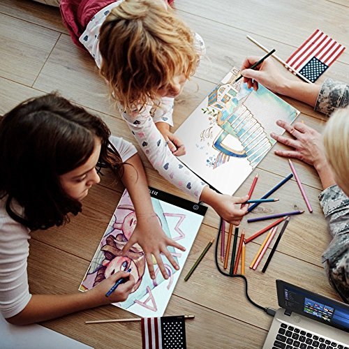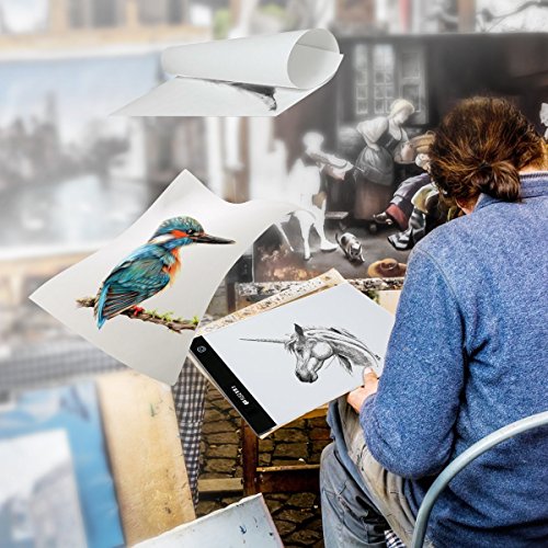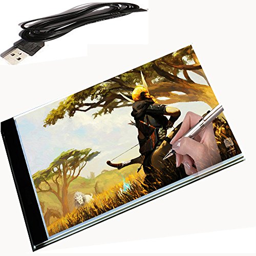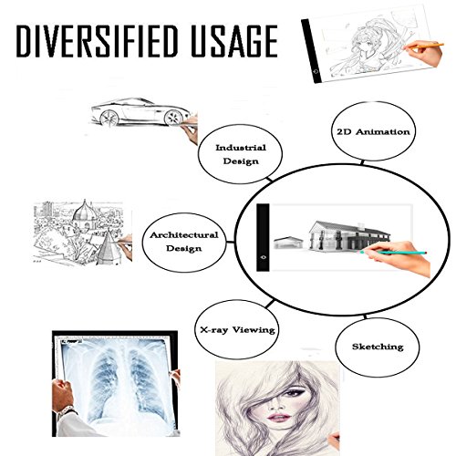 BGOING LED COPY TRACING STENCIL BOARD-MORE THAN HIGH LIGHT TRANSMISSION A4 SIZE LED LIGHTING PAD TABLR,YOUR BEST CHOIC FOR DESIGN DRAWING Chose the Flicker-Free LED Animation Copying Stencil,Your Drawing Skills Will Be Greatly Improved ! Features: DIVERSIFIED USAGE The LED Light pad is designed for everyone whether you are an enthusiastic amateur or a professional artist,that's Professional copy in 2D Animation, Cartoon,Calligraphy, Fabirc Design,Photograph, Film, Craft Projects Embossing,Scrapbooking, Tattoo Transferring, Architecture, Design Drawing,Quilting FLEIZ FLEIZ developed special Eye protection technology and LED lighting technology, Light soft, uniform, eye protection, more healthy, very low heat, the whole set through the FCC, CE, certification of eye protection safety. Flicker-Free LED flicker-Free green light source, there will be no "flash" phenomenon.Using the backlight technology of LCD display, the light evenness is good enough to match the display. Advantage the panels used on the material hardness and excellent penetrability is the strengthening of optical glass, small volume, anti-scratch, energy saving, corrosion resistance, aging resistance, long life, safety voltage dc power supply, light uniformity good, which became the main characteristics of the LED ultra thin.Therefore, it becomes the most popular copy machine after aluminum alloy copying platform. What's in Package 1 x USB Portable Light Copy Board, 1 x USB Power Cable, 1 x User Manual Guaranty: Drawing Tracing Stencil Board is pretty light in weight . Together with the Simple and Practical Tracing Board is a 365-day guaranty and our forever VIP customer service. [Manuscript Paper are NOT Included] 0