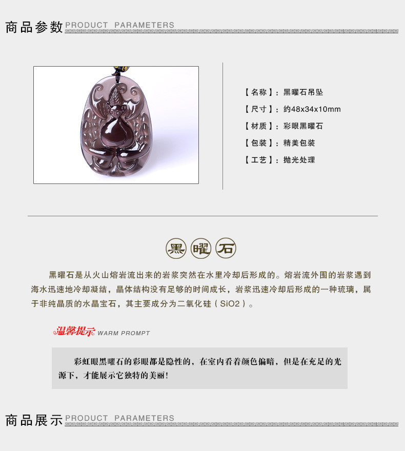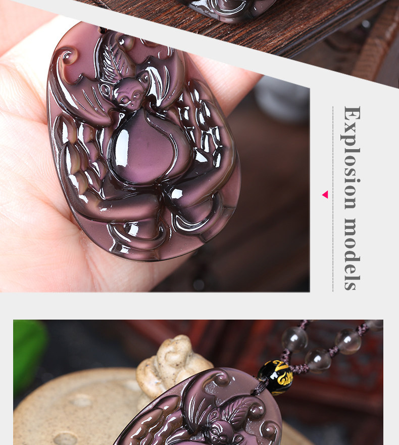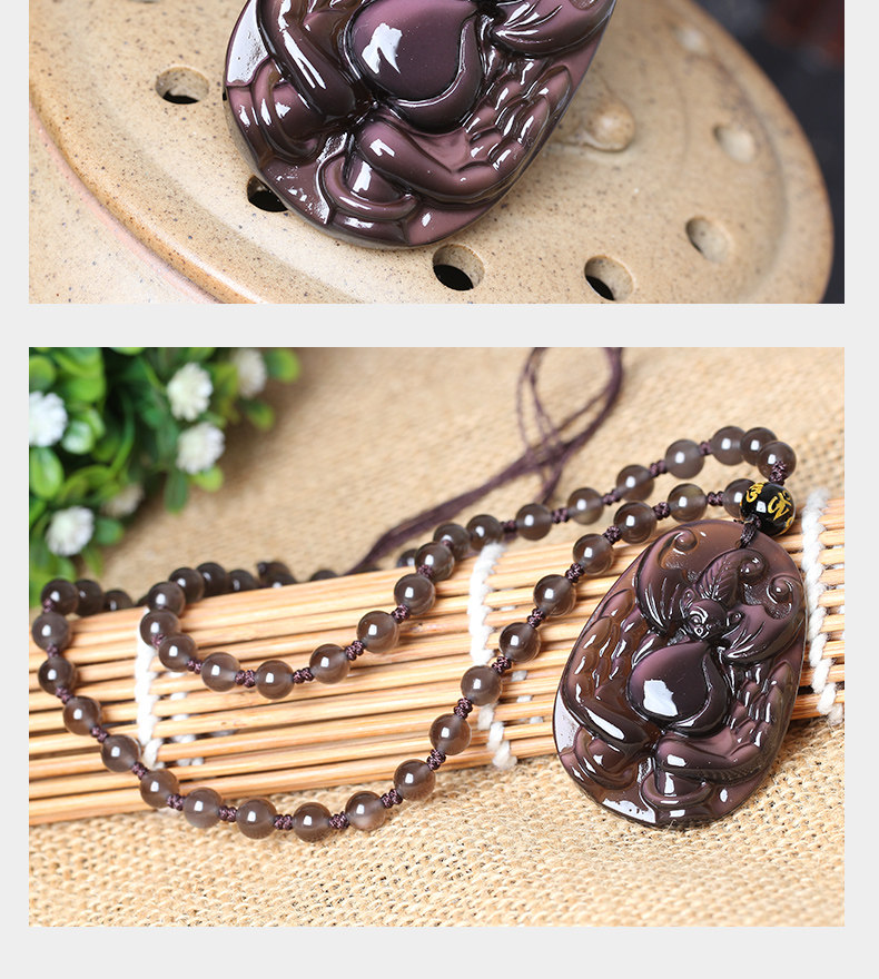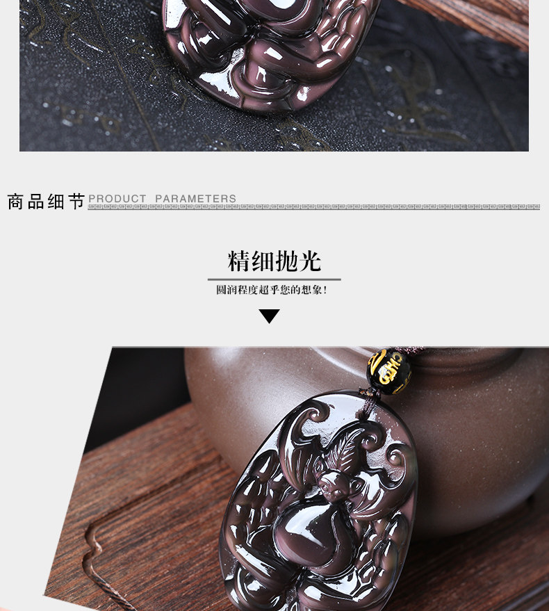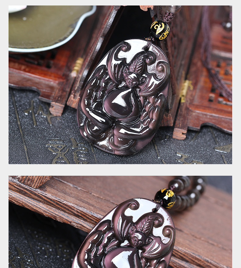 冰彩黑曜石吉祥物挂件属猪竹报五福吊坠