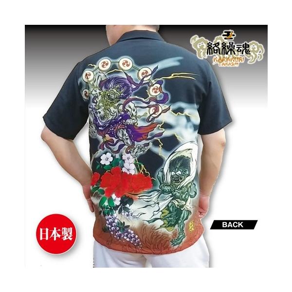 日本を代表する人気和柄ブランド「絡繰魂」の和柄アロハシャツ!奇跡の激安!通常14040円(税込)の処、25%OFF特別価格10584円(税込)にて今夏数量限定販売!日本古来の和柄に刺繍・抜き染プリントを駆使し独特の風合いと世界観を展開し幅広い世代に支持される人気ブランド「絡繰魂(からくりたましい)」。 その絡繰魂より、バック全面大迫力の風雷神・日本画風プリントのアロハシャツがこの夏限定数量の販売です! 新感覚「和柄アロハ」! 日本美の力強さと華麗さの対照を楽しむ! 京都産のちりめん生地を使用。 表面が凸凹するシボがあることで光沢を抑えたり、染発色の良さをより打ち出している。 さらりとして着心地満点! 力強い風神雷神、菊・牡丹・桜・藤と日本を代表する花がインクジェットプリントにより、美しいグラデーションの中浮かび上がるぜいたくな日本画デザインである。 タンクトップやTシャツなど重ね着でのコーディネートや、1枚でも着回せる便利でお洒落なカジュアルシャツ! 斬新で鮮やか、それでいてサラリと爽やか新感覚半袖シャツ! デニムや綿パンツに、ハーフパンツに合わせてもグッド! 夏のNEW定番に1着どうぞ!