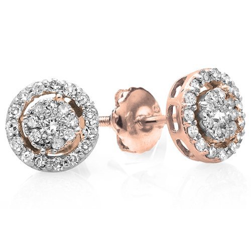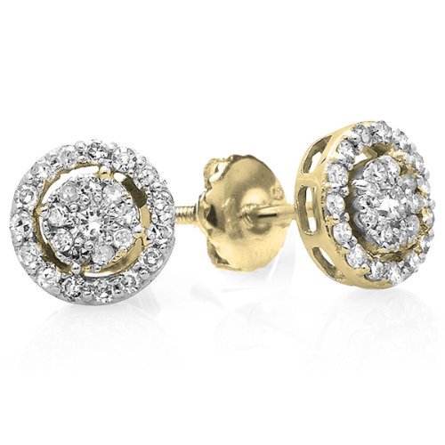 -. Title : 0.40 Carat (ctw) 14K Gold Round Cut Diamond Round Shape Cluster Earrings Look of 1 CT each