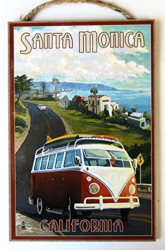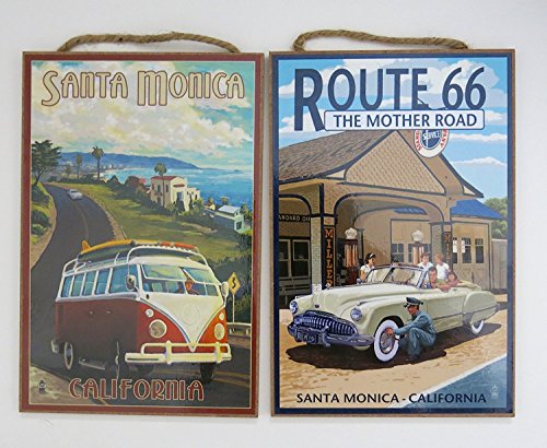 Santa Monica, California, Souvenir, Wall Decor, Wood Wall Plaque, 10"x7",set of Two, Vw Van, Route 66