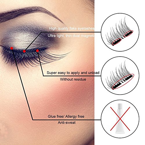 -. Title : Magnetic False Eyelashes Extension Set with Makeup Mirror Case (12 pieces) Ultra Thin 3D Fiber Reusable Fake Lashes Extension Half Size Fake Lashes in One Set for Natural Look Organizer for Travel
