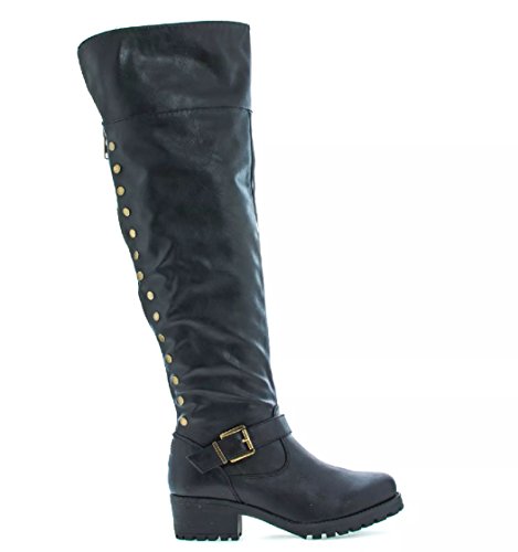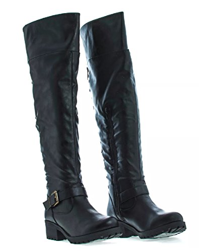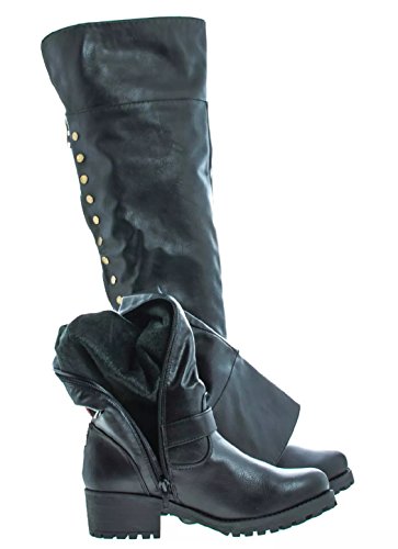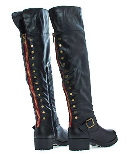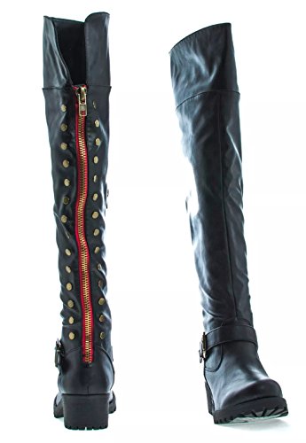 Product DescriptionBamboo Womens Premium Letherette Over The Knee zip Up Studded Lug Sole Motor Boots Capture04 60