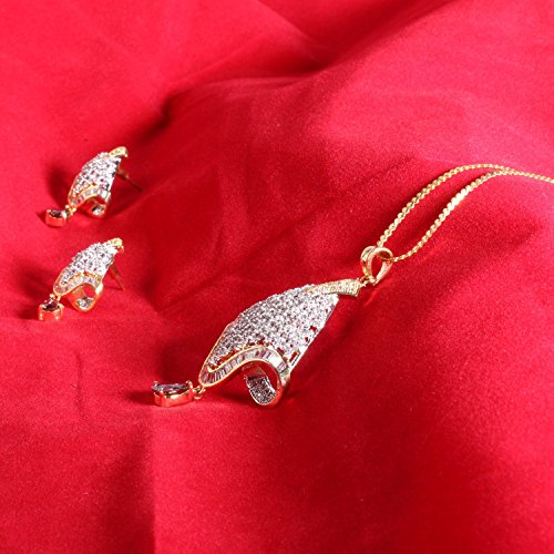 -. Title : Swasti Jewels Women's American Diamond Flower CZ Zircon Fashion Jewellery Set Pendant Earrings