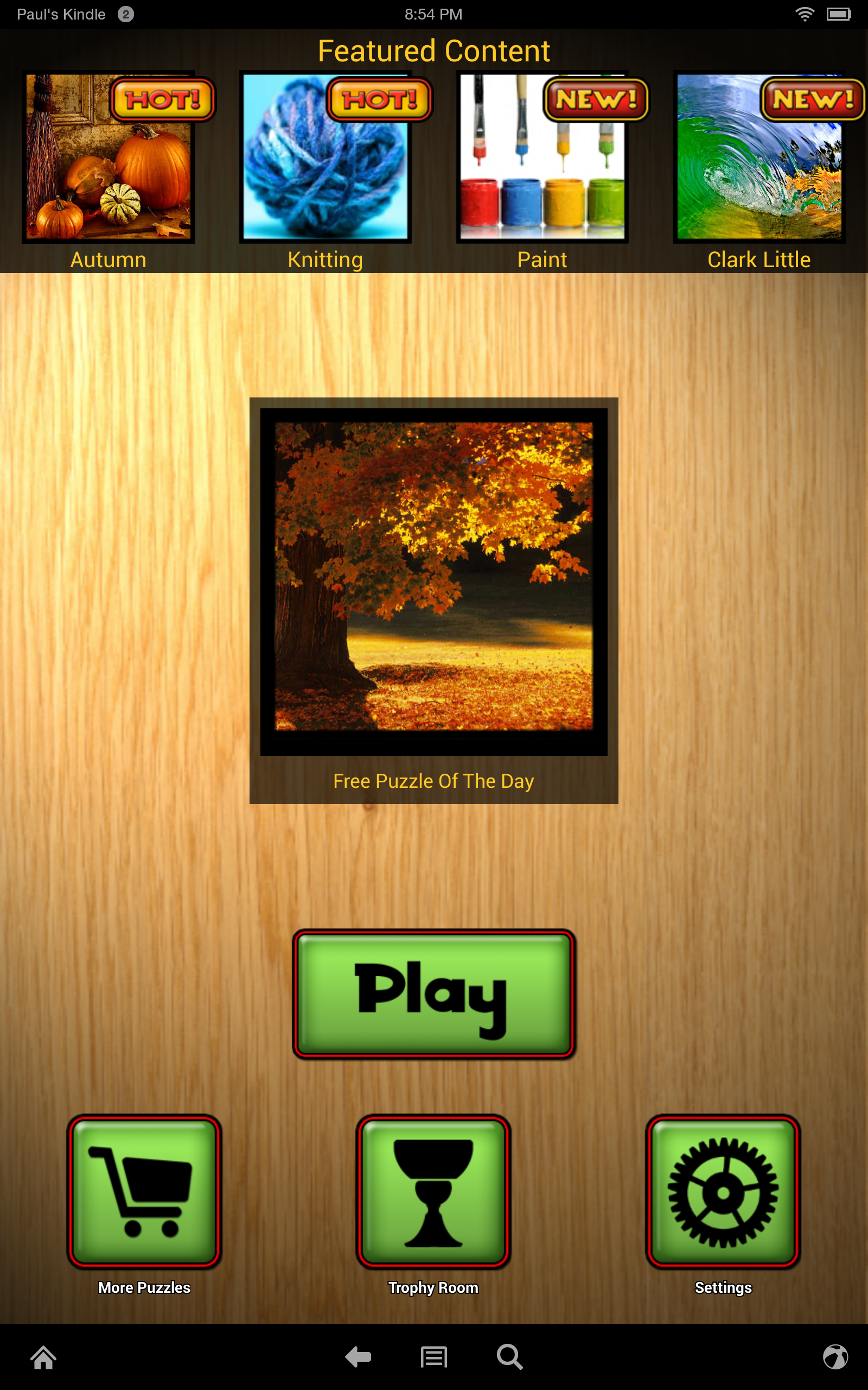 - Feature : Free Puzzle of the Day! Play a different FREE puzzle every day! / 6,000+ beautiful, high-definition puzzles available for download - more added weekly! / Lots of FREE puzzle packs available for download! / Make puzzles from your own pictures! / Play up to 400 pieces on tablets or 100 pieces on phones / Turn on piece rotation for a greater challenge! / Saves your progress automatically / 40+ achievements to earn / Keeps your mind sharp