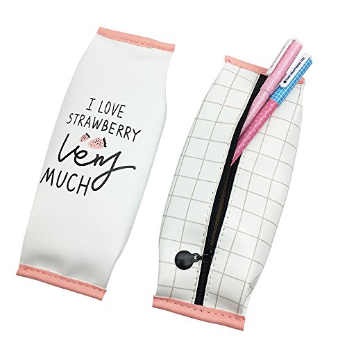 Mziart Cute Strawberry Pen Pencil Case Zippered PU Pouch Cosmetic Makeup Bag, 2 Pieces
