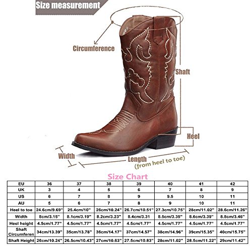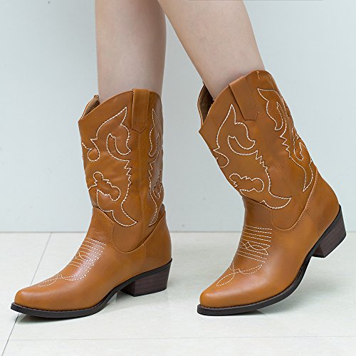 -. Title : SheSole Damen Stiefel Leder Optik Cowboy Halbschaft Stiefeletten ( Tan wie Orange Farbe )