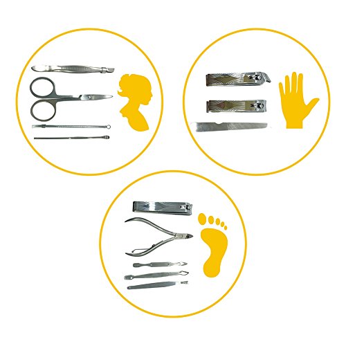 Studio : Maggift Publisher : Maggift Binding : Health and Beauty Product Description Maggift Multi-function Manicure set ,the best nail grooming tool for you! Contents:?12 tools of Professional Manicure Set as following: 3 x Nail clippers / trimmers of different sizes 1 x Multipurpose scissors 1 x Blackhead needle with loop remover 1 x Ear pick 1 x Cuticle trimmer 1 x Eyebrow tweezer? 1 x cuticle knife? 1 x Nail file 1 x Singled-edged double side stick 1 x V-shaped push stick Caution:? The clipper and pusher are extremely sharp, please keep away from children.