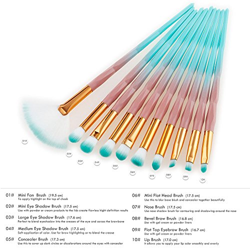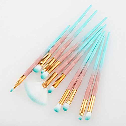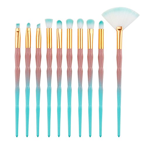 Aisikasi Diamond Unicorn Eye Makeup Brushes set 10pcs Sky Blue Gradient Color Professional Kabuki Eye Eyeshadow Eyebrow Lip Concealer Brush