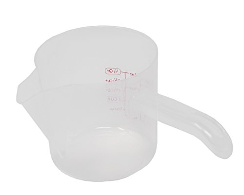 DETAILS - Holds up to 2 cups. Does not have measuring lines. BPA-free polypropylene. Top shelf dishwasher safe. About 8"L x 5.25"W x 4.25"H.