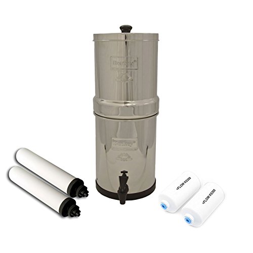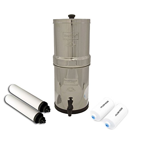 Travel Berkey Water Filter System w/ 2 White Ceramic Super Sterasyl Filters Bundled w/ 1-set of Fluoride Filters (PF4)- BK4X2-CF- Best Berkey Combo for Great Tasting Water
