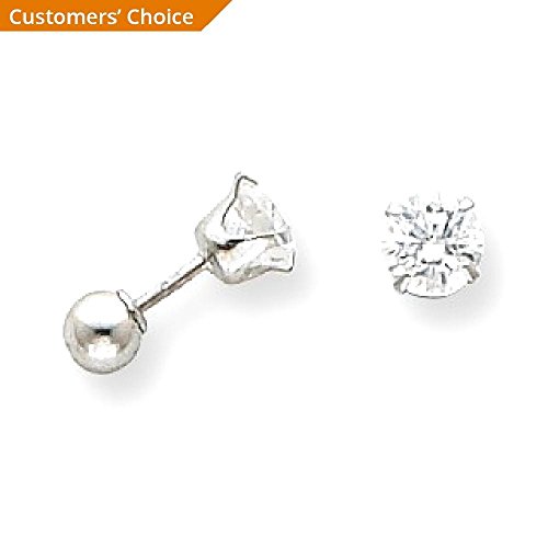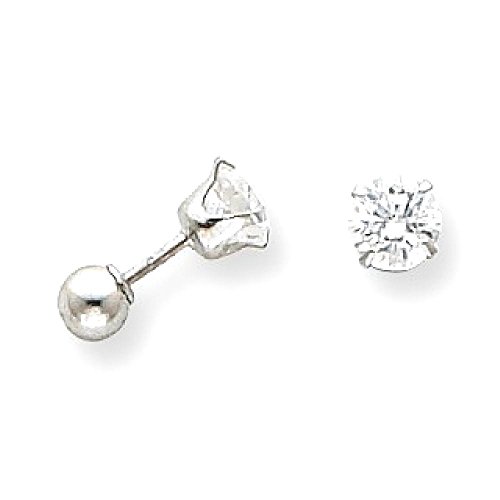 ICECARATS DESIGNER JEWELRY 14K WHITE GOLD 5MM CUBIC ZIRCONIA CZ 4MM BALL REVERSIBLE EARRINGS