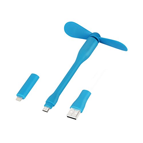 FOOMO Three in One Phone Fan - Mini Portable Fan Plug and Play Detachable (USB & Lightning & Micro USB Port) For iPhone, Ipad, Samsung, Sony, HTC, Motorola, Notebook (Blue)