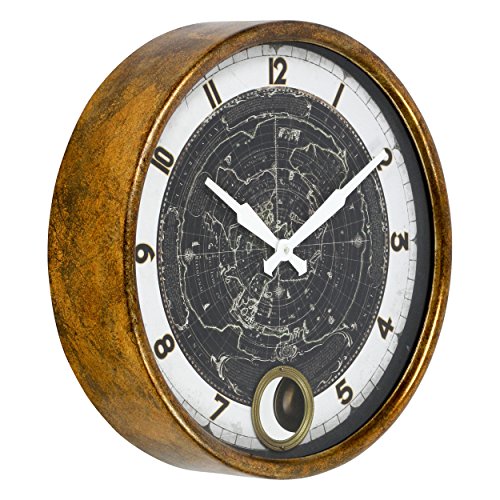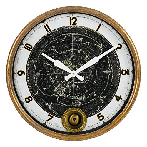 -. Binding : Kitchen -. Brand : Aspire Home Accents -. Feature : Dimensions: 20L x 20W x 5D in. / Metal frame with a glass cover / Golden distressed finish / Brass pendulum with world map on the face / Quality quartz movement -. Label : Aspire Home Accents -. Manufacturer : Aspire Home Accents -. MPN : 4080 -. PackageQuantity : 1 -. PartNumber : 4080 -. ProductGroup : Home -. ProductTypeName : HOME -. Publisher : Aspire Home Accents -. Studio : Aspire Home Accents -. Title : Aspire Mason Pendulum 20 in. Wall Clock
