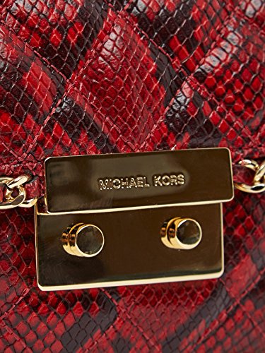 -. Brand : -. Color : Red Gold -. Department : womens -. EAN : 0889154859630 -. Feature : Give your going out look a luxe upgrade with MICHAEL ' unbelievably stylish shoulder bag, designed in your choice of rich python-embossed leathers with a divided interior and several thoughtful card slots. Quilted luxe python-embossed goat leather Chain-link strap can be worn long with 23" drop or doubled for shoulder wear with 12" drop Push-lock closure Exterior features gold- or silver-tone hardware and 1 snap pocket Interior features 1 divider pocket, 1 zip pocket and 3 card holders 8" W x 6" H x 3-1/2" D Silhouette is based off 5'9" model Imported -. ProductGroup : Shoes -. ProductTypeName : HANDBAG -. Title : MICHAEL Womens Carine Medium Shoulder Bag (Red/Gold) -. UPC : 889154859630