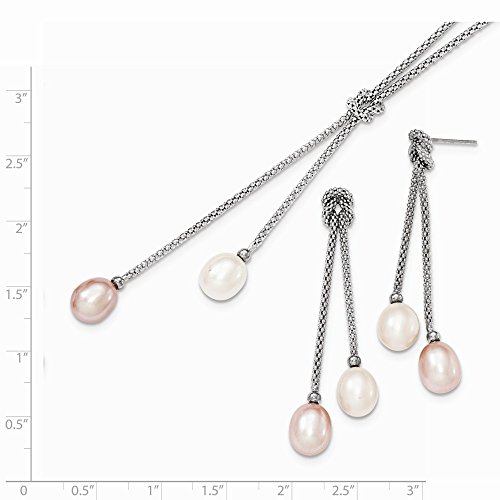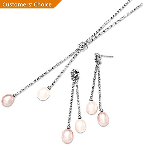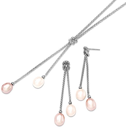 ICECARATS DESIGNER JEWELRY 925 STERLING SILVER FRESHWATER CULTURED PEARL KNOT 18 IN. CHAIN NECKLACE POST STUD EARRINGS SET
