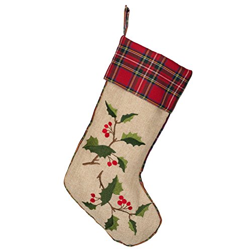19 inch Holly Berries and Leaves with Red Green Checker Plaid Pattern Cuff Christmas Stocking