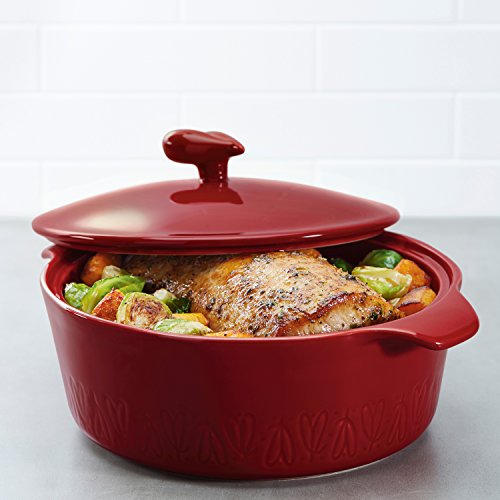 ReleaseDate : 2017-11-15 Studio : Ayesha Curry Publisher : Ayesha Curry Binding : Kitchen Product Description Pull together an easy batch of weeknight Five Ingredient Pasta or make your next extra cheesy mac and cheese a household hit with the Ayesha Curry Home Collection 2.5-Quart Stoneware Round Casserole. A stylish profile gives this casserole pan just the right accent of chic, table-ready design, while the large cooking area offers plenty of room for Ayesha's Oven-Roasted Brown Sugar Chicken or a family-sized dish of potatoes gratin. Durable, high-quality stoneware heats foods evenly and features a vibrant, stain-resistant glazed finish that stylistically incorporates Ayesha Curry's signature heart logo, making this versatile cookware perfect for an oven-to-table dinner party with friends or a holiday meal with the entire family. Plus, this Ayesha Curry kitchenware helps support No Kid Hungry to provide up to 500,000 meals to children in need. Learn more at nokidhungry.org/onedollar. Whether crafting a one-pot meal of turkey noodle soup or baking a batch of gooey mac and cheese, cleanup is easy with the dishwasher safe casserole. Ayesha Curry stoneware is also freezer and microwave safe, so make plenty of leftovers for a quick lunch on the go or for when weekend stomachs start growling. Designed to look great and be versatile and easy to use, the Ayesha Curry Home Collection 2.5-Quart Stoneware Round Casserole is a natural complement to the entire Ayesha Curry line and the perfect cookware to discover your kitchen cool without the fuss. 0