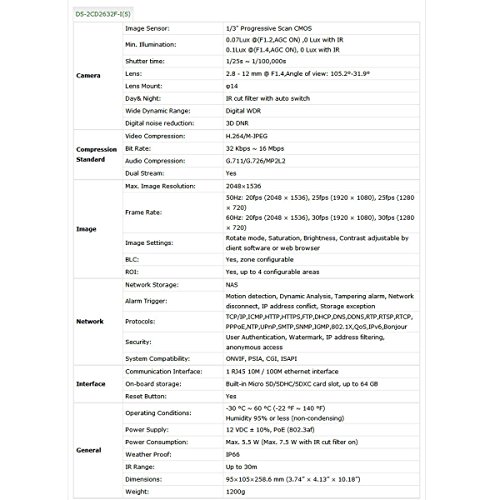-. Title : 2015 Hikvision V5.2.5 DS-2CD2632F-IS 3MP Bullet Camera Full HD 1080P POE Power Network 2.8-12mm Vari-focal Lens IP CCTV Camera