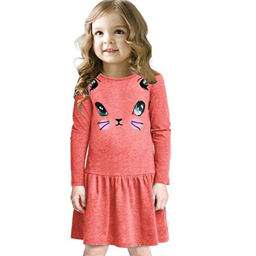-. Title : Lowprofile Cat Printed Dress Baby Girl Casual Long Sleeve Princess Dresses For Little Girls (3-7T)