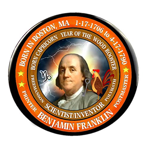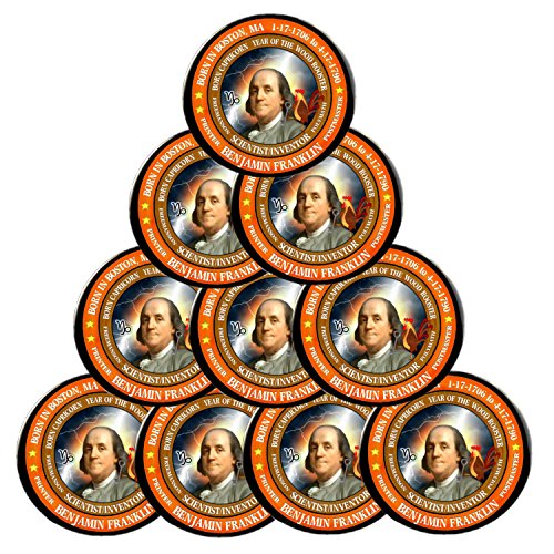 Product DescriptionPack-10 Benjamin Franklin Pins, Scientist Born Capricorn Zodiac Year Wood Rooster0