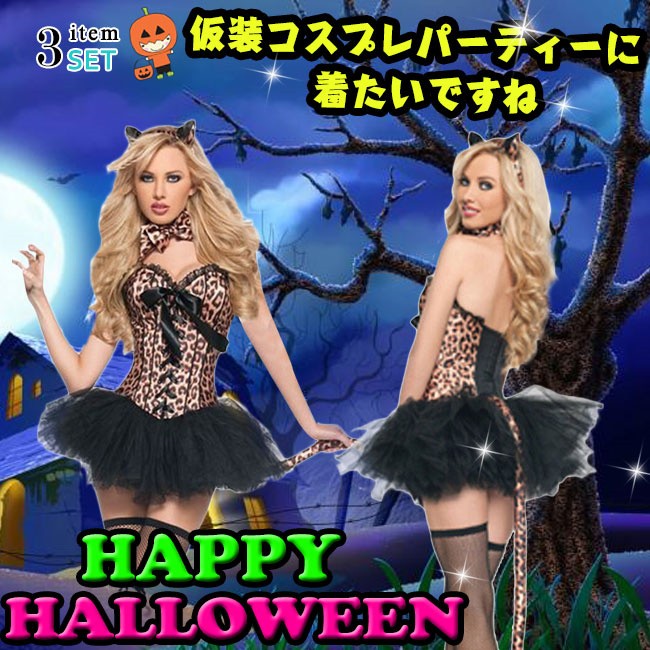 ハロウィン コスプレ 衣装 レディース セクシー アニマル 動物 レオパード ヒョウ柄 猫耳 コスチューム 大人 仮装 変装 セットアップ 服 ハロウィーン ハロウイン パーティーグッズ イベント用品 女性用 余興 halloween cos