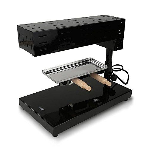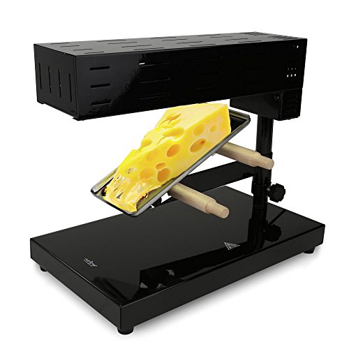 Convenient Electric Cheese Melter Prepare Your Food with Traditional Swiss-Style Angle Adjustable Grilling Plate for Cheese Placement High-Powered Heating Element Simple Operation & Plug-in Design Adjustable Temperature Controls Disassembles for Storage Stainless Steel & Stain-Resistant Construction Safe for Placement on Any Kitchen Counter or Tabletop