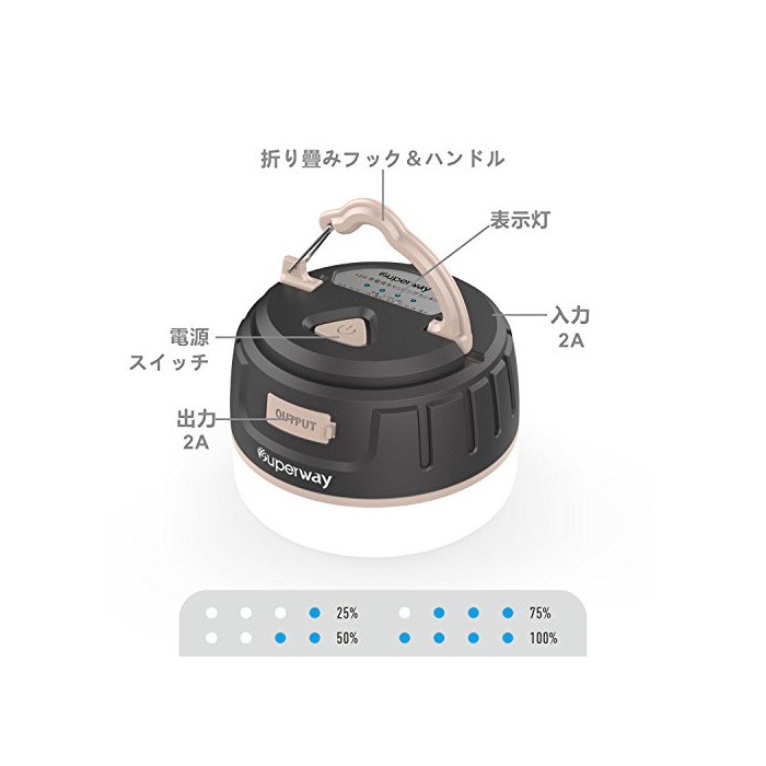 원본상품명: Superway Ledランタン USB充電式 超?量 ?中電? 5200mAh モバイルバッテリ? アウトドアライト IP65 防水 五つ点?モ?ド マグネット式テントライト 多機能 アウトドア&キ