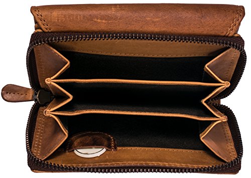 BelleBay Hill Burry Damen Geldborse | Kompakt & XXL - viel Platz - Used Look - echt Leder Portemonnaie