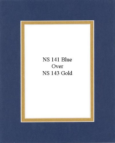 - Pack of 20 11x14 Blue/Metallic Gold Double Mats Mattes with White Core Bevel Cut for 8x10 Photo + Backing + Bags