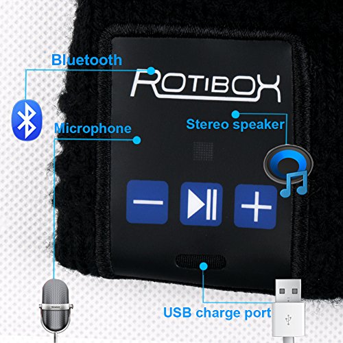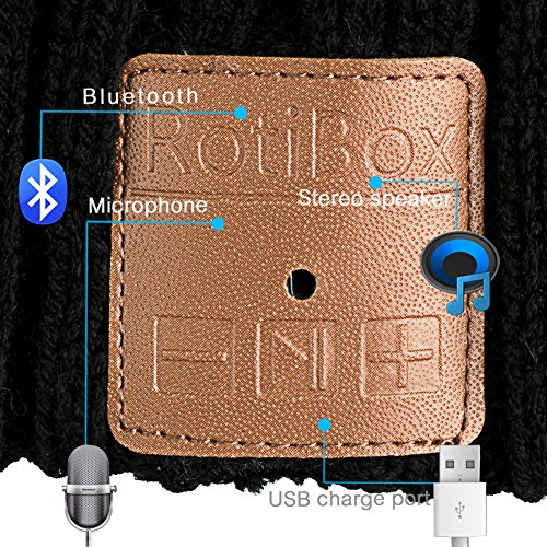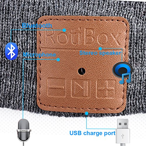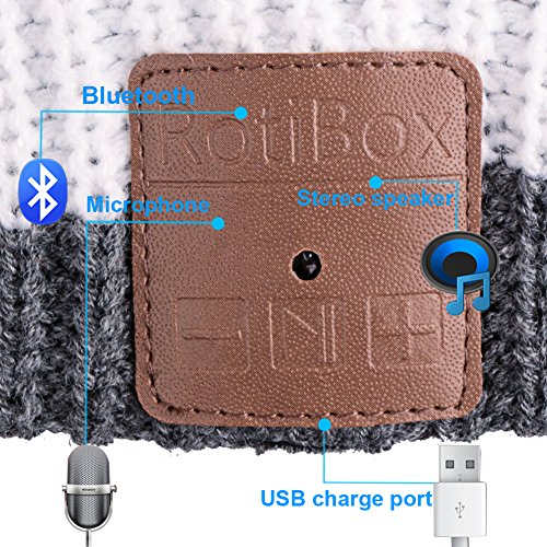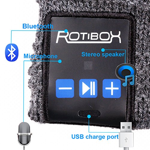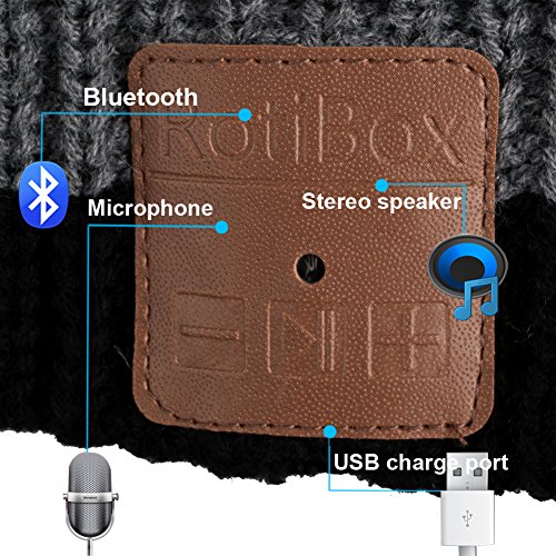 Rotibox Outdoor Bluetooth Beanie Hat Cap w/Kopfhorer Headset Stereo Lautsprecher & Mikrofon Hande frei Call fur Running Skifahren Arbeiten Out Weihnachten Geschenk …