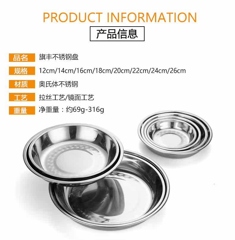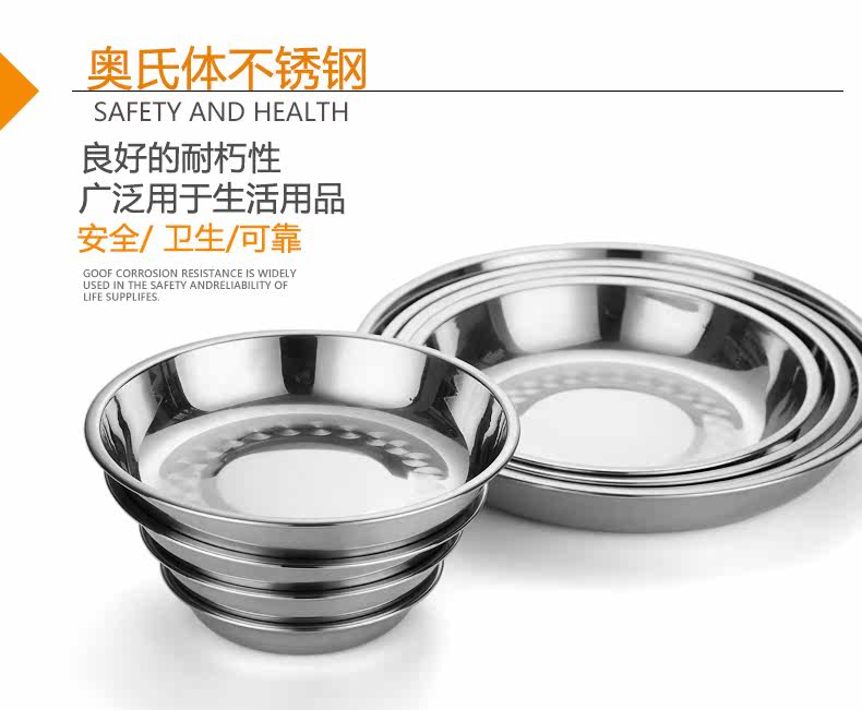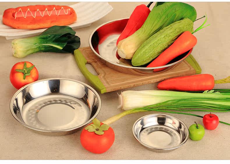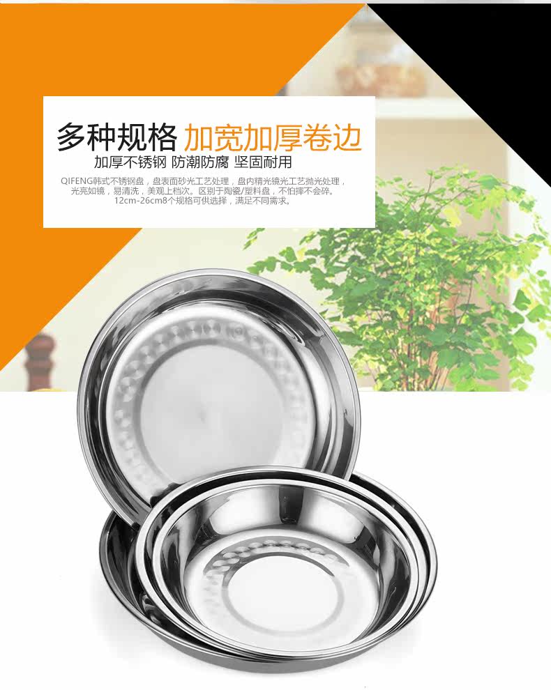 不锈钢耐磨防摔加深盆圆形盘饭菜盘汤盘餐具碟子水果盘